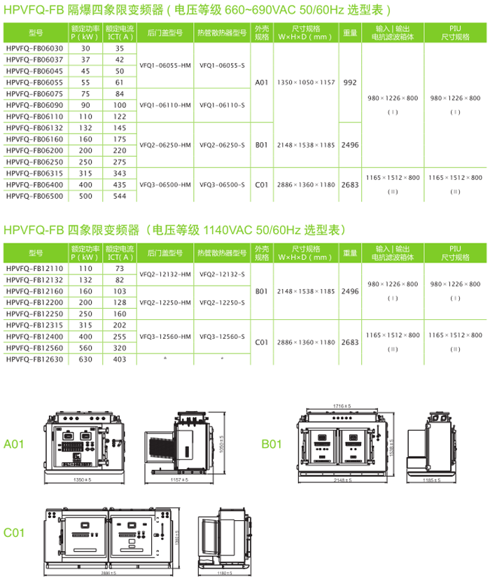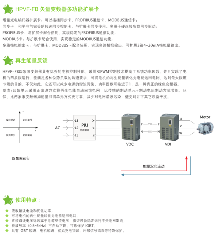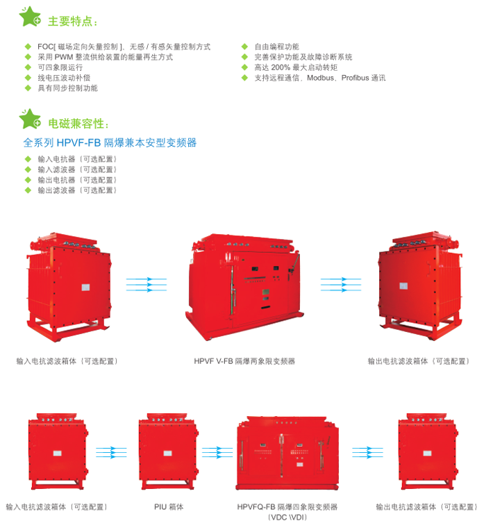 HPVF-FB隔爆兼本安型變頻器以全新的設(shè)計思路,將變頻、矢量控制、隔爆及本質(zhì)安全等技術(shù)相結(jié)合,具有多種控制模式、低速高轉(zhuǎn)矩等特性,可四象限運(yùn)行,具有能量回饋功能,節(jié)能效果明顯。主要適用于煤礦井下或露天礦山、選煤廠等有爆炸危險場所的大負(fù)荷設(shè)備軟起動、軟停車控制。