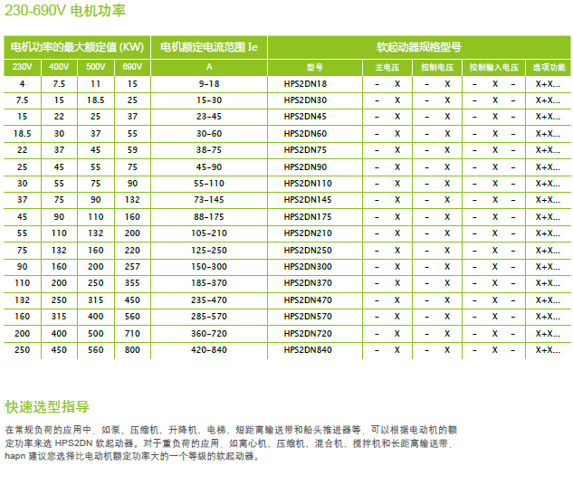 HPS2DN15...840是在原有HPS2S、HPS2D/DH基礎(chǔ)上新開發(fā)的一種基于先進(jìn)的數(shù)字處理器的調(diào)壓、限流式智能電機(jī)軟起動(dòng)器,其獨(dú)特的智能電子電路提供完美的控制及保護(hù)功能。